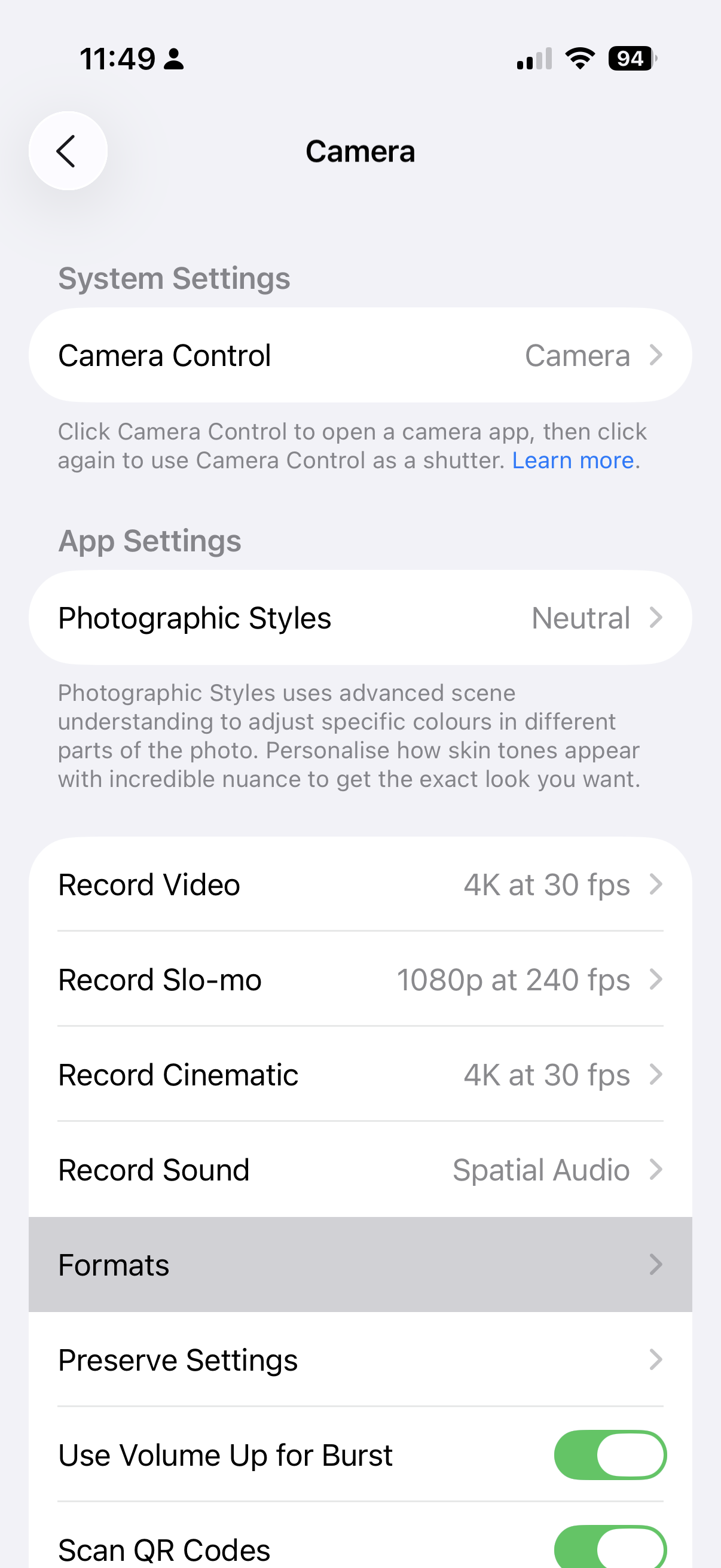 - Head to settings - Camera - Formats